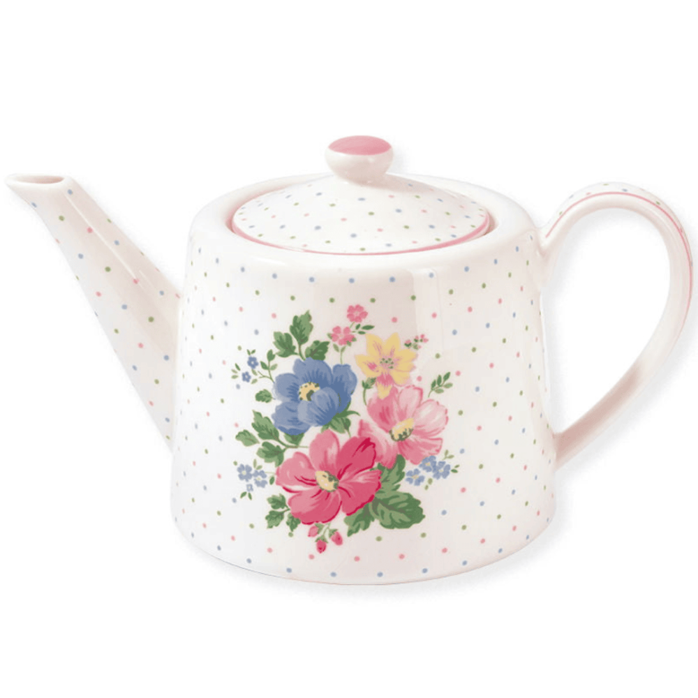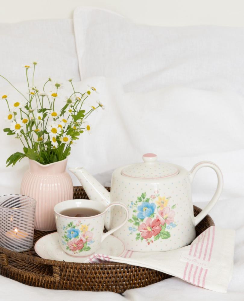 إبريق مورد وكوبين شاي مع صحونها