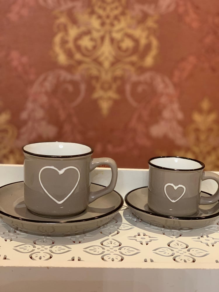 كوب بحجمين مع صحونها لشخص واحد