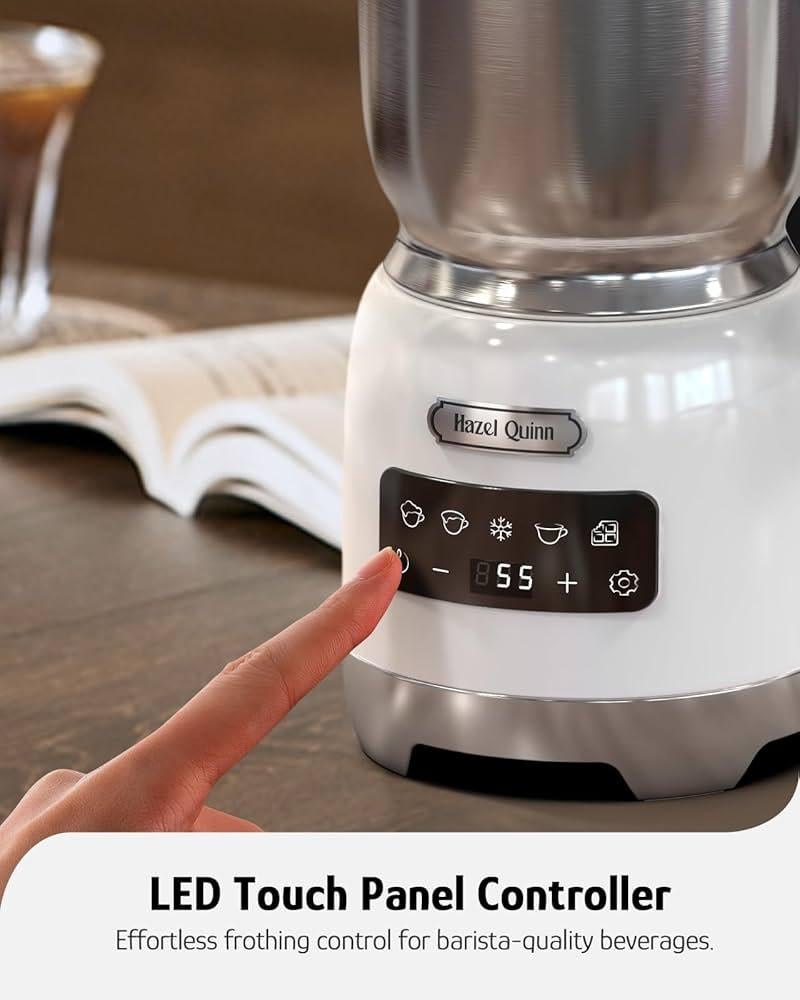 رغوة ساخنة وباردة تتميز ماكينة رغوة الحليب Hazel Quinn بـ 4 درجات حرارة قابلة للتعديل للحصول على رغوة مثالية - 45 درجة مئوية / 55 درجة مئوية / 65 درجة مئوية ورغوة باردة
