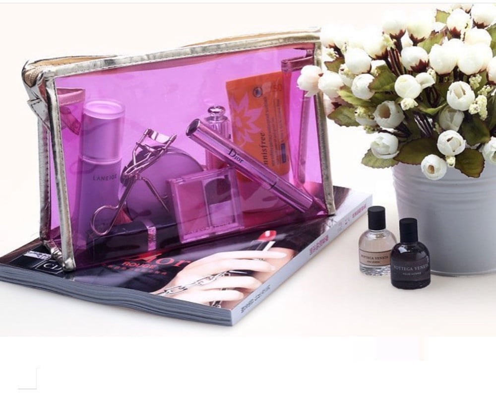 حقيبه وردي شفافه من البلاستيك المقوى